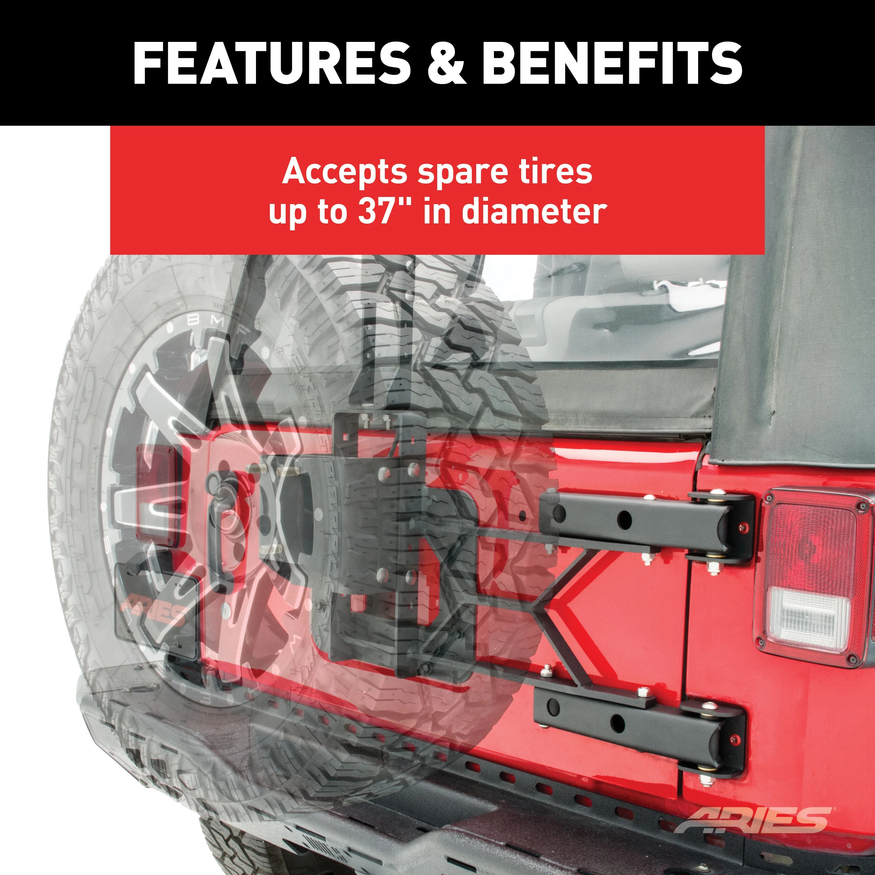 ARIES 2563000 Jeep Wrangler JK Heavy-Duty Adjustable Rear Door Spare Tire Carrier for Up to 37-Inch Wheels